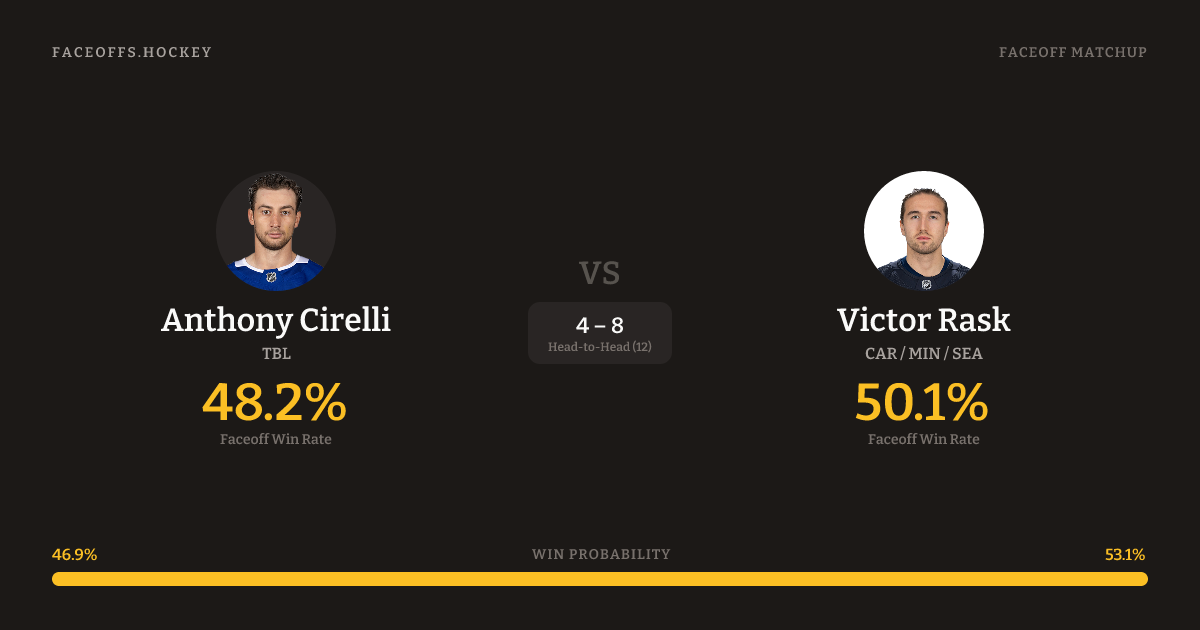 Anthony Cirelli vs Victor Rask — Faceoff Head-to-Head