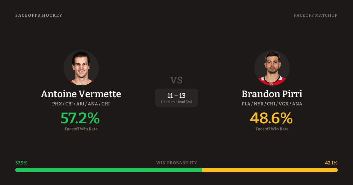 Antoine Vermette vs Brandon Pirri — Faceoff Head-to-Head