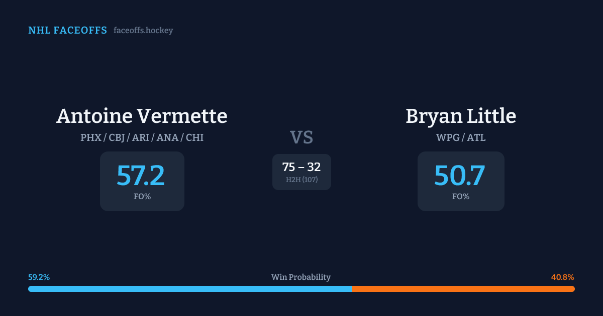Antoine Vermette vs Bryan Little — Faceoff Head-to-Head
