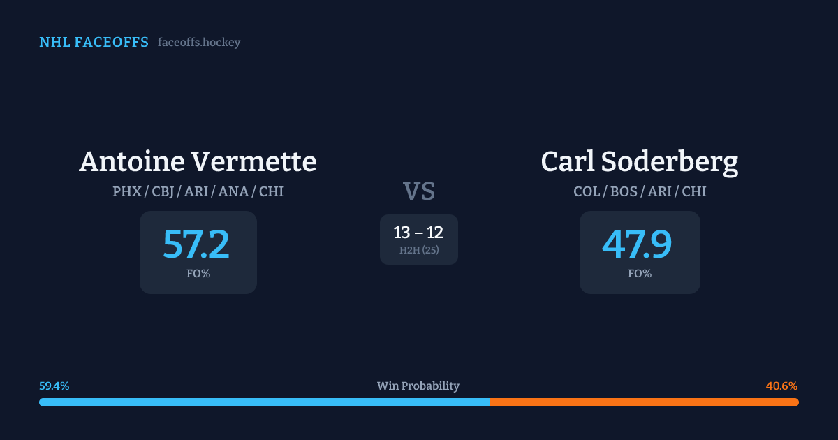 Antoine Vermette vs Carl Soderberg — Faceoff Head-to-Head