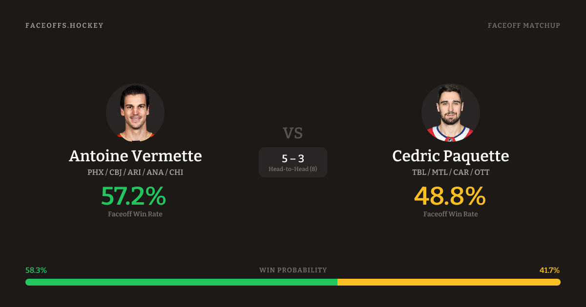 Antoine Vermette vs Cedric Paquette — Faceoff Head-to-Head