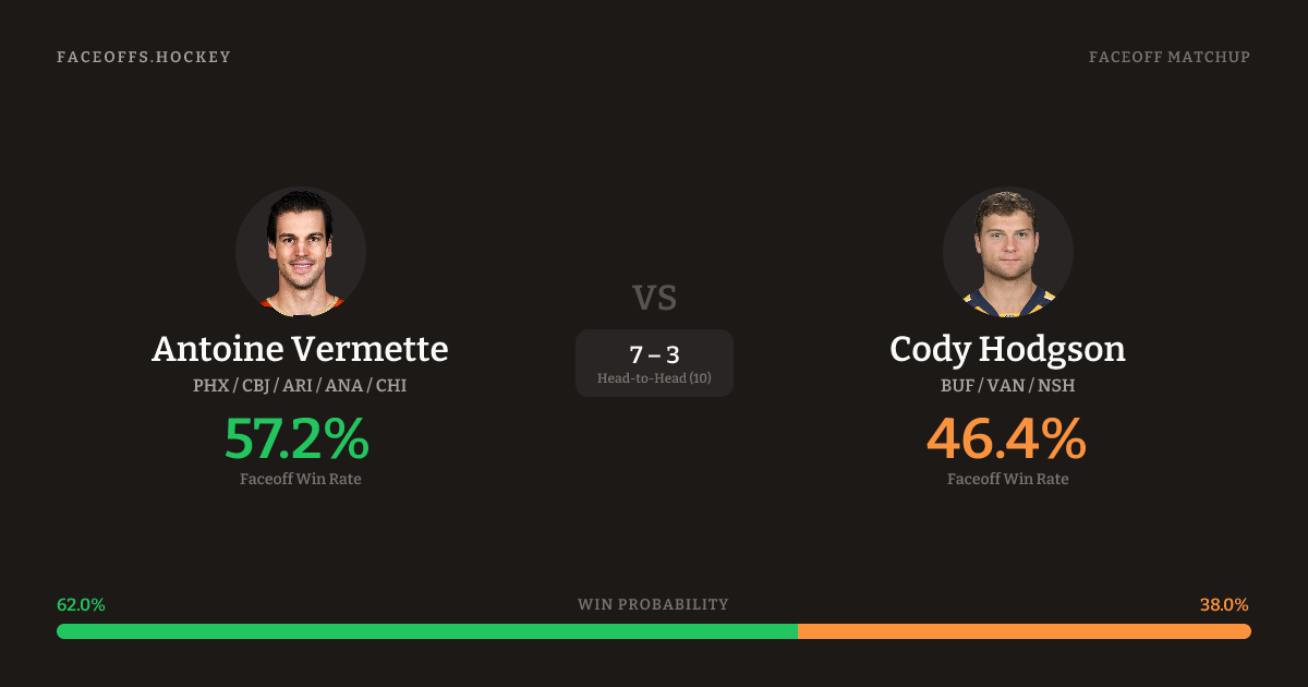 Antoine Vermette vs Cody Hodgson — Faceoff Head-to-Head