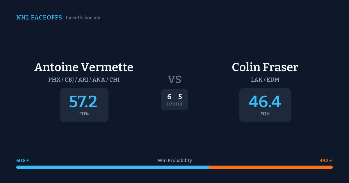 Antoine Vermette vs Colin Fraser — Faceoff Head-to-Head