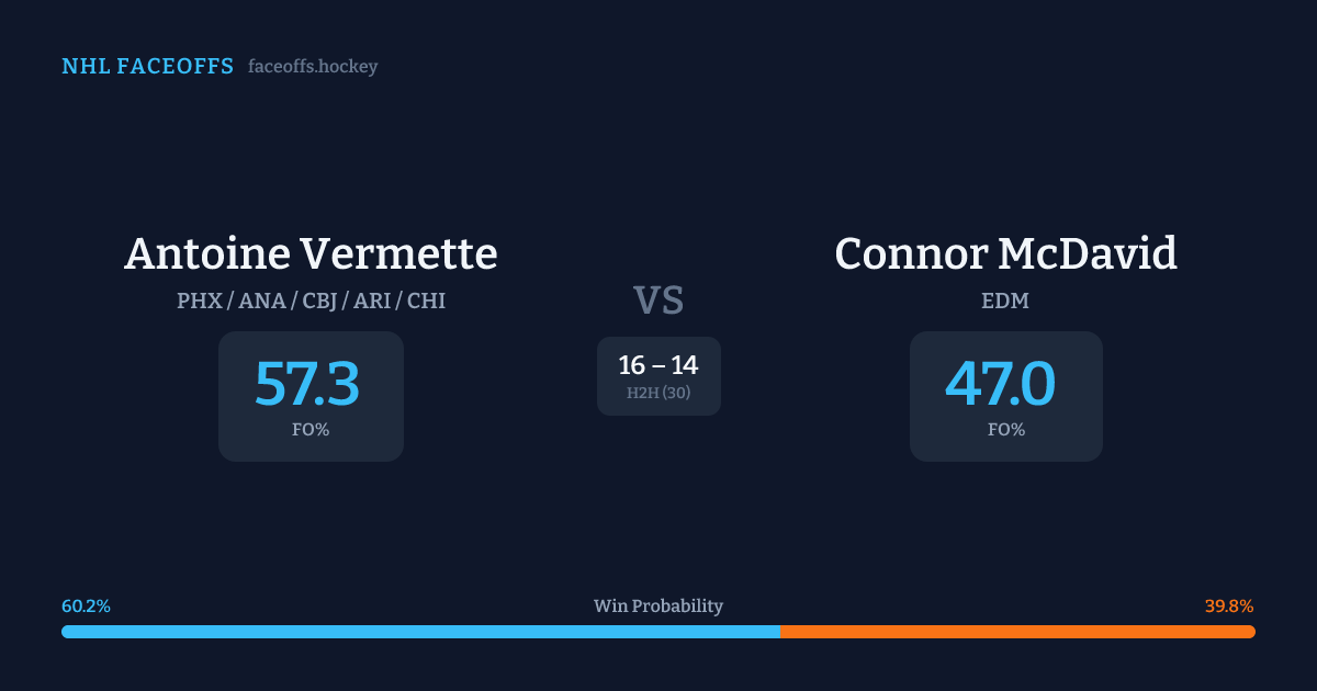 Antoine Vermette vs Connor McDavid — Faceoff Head-to-Head