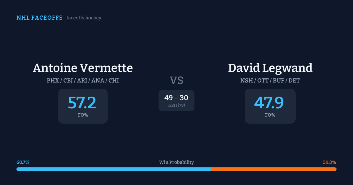 Antoine Vermette vs David Legwand — Faceoff Head-to-Head