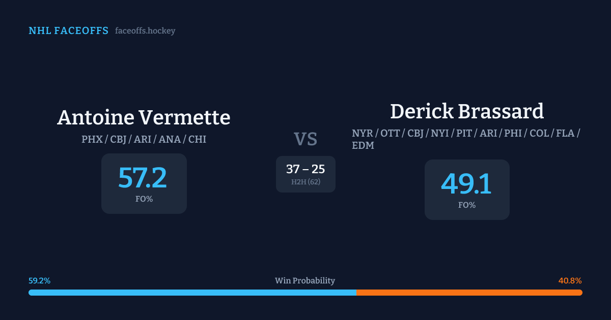 Antoine Vermette vs Derick Brassard — Faceoff Head-to-Head
