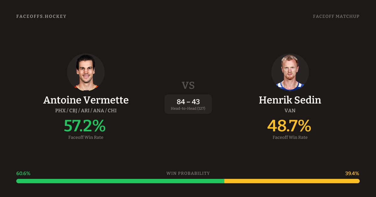 Antoine Vermette vs Henrik Sedin — Faceoff Head-to-Head