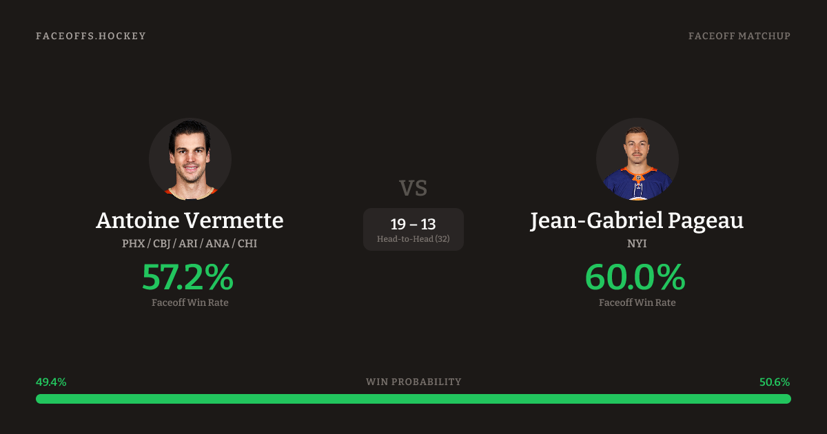Antoine Vermette vs Jean-Gabriel Pageau — Faceoff Head-to-Head