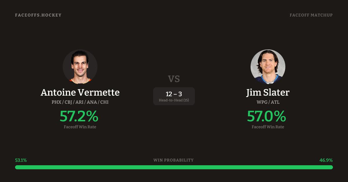 Antoine Vermette vs Jim Slater — Faceoff Head-to-Head