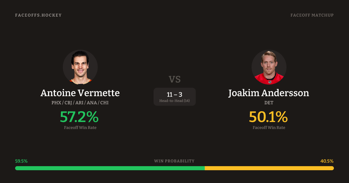 Antoine Vermette vs Joakim Andersson — Faceoff Head-to-Head