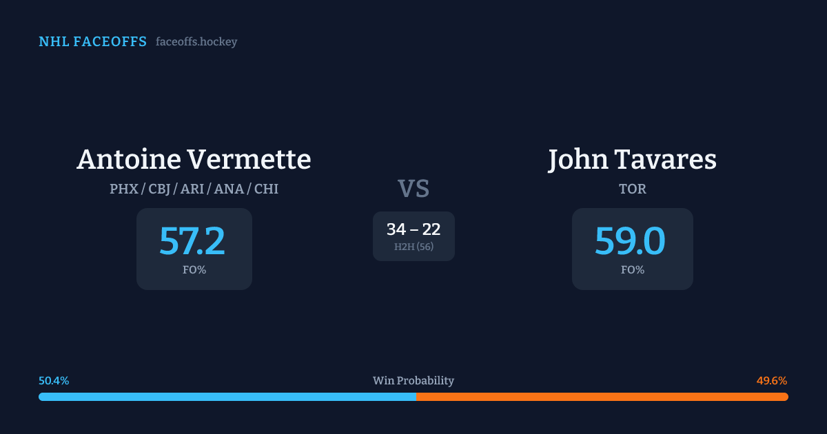Antoine Vermette vs John Tavares — Faceoff Head-to-Head