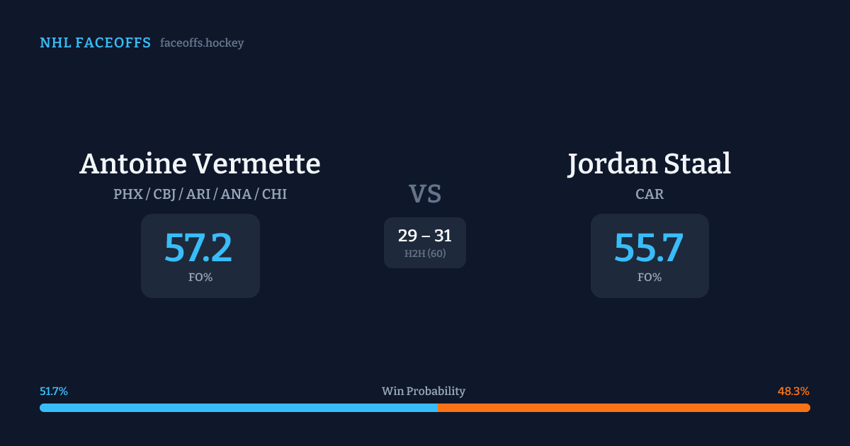 Antoine Vermette vs Jordan Staal — Faceoff Head-to-Head