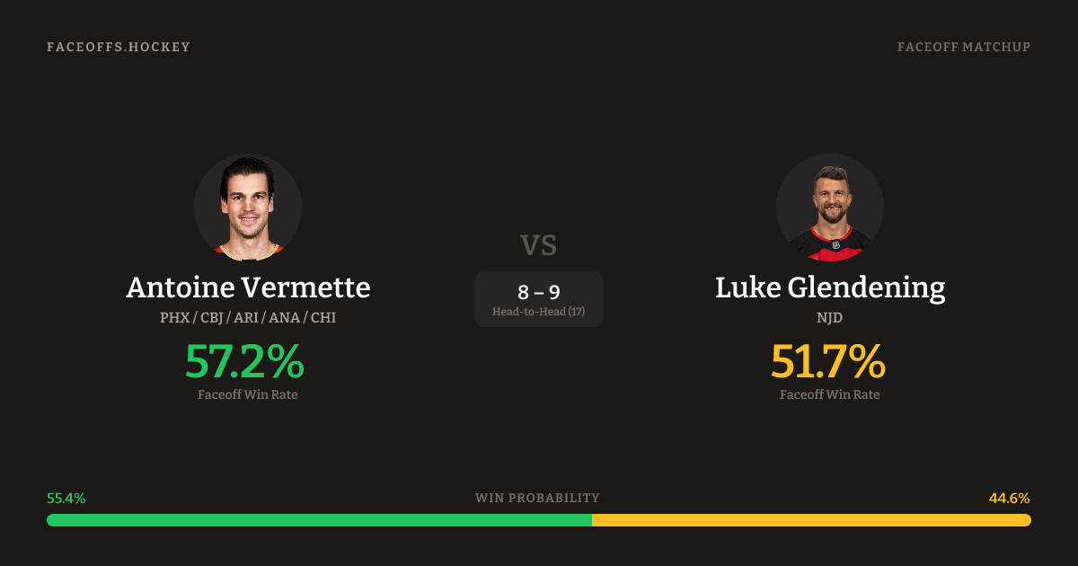 Antoine Vermette vs Luke Glendening — Faceoff Head-to-Head