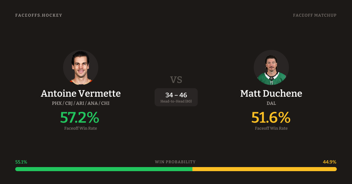 Antoine Vermette vs Matt Duchene — Faceoff Head-to-Head