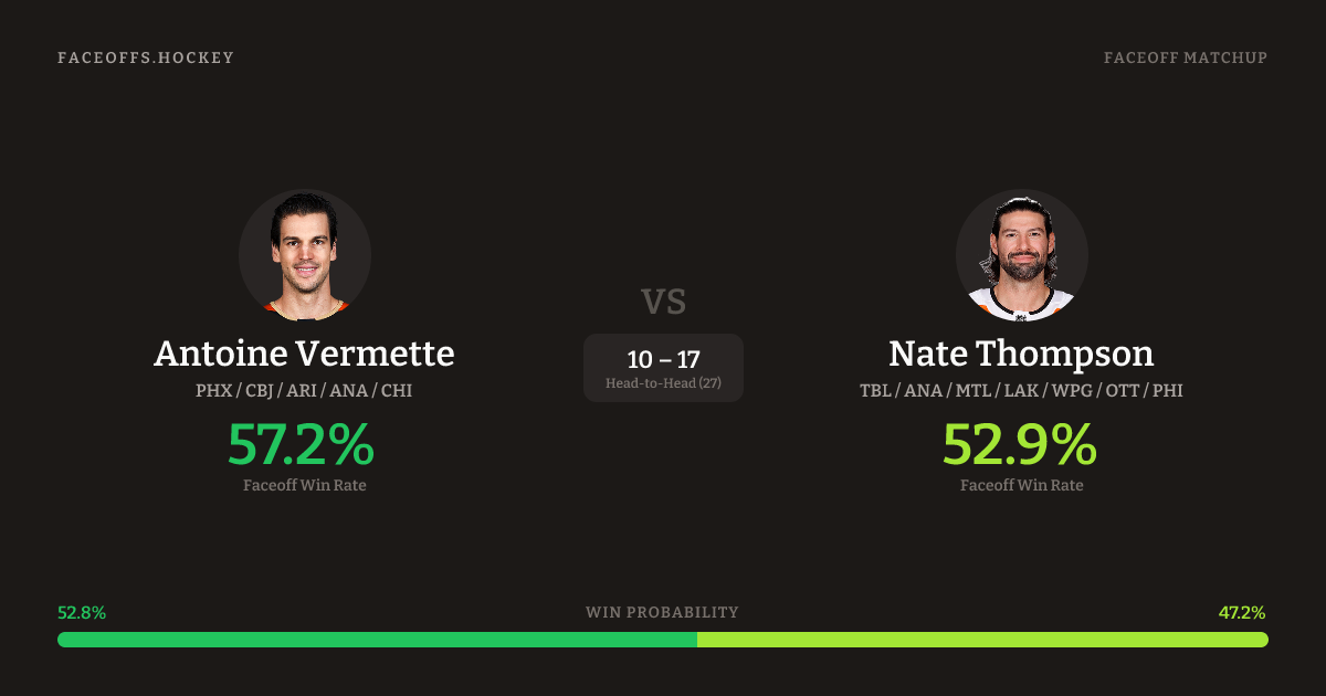 Antoine Vermette vs Nate Thompson — Faceoff Head-to-Head