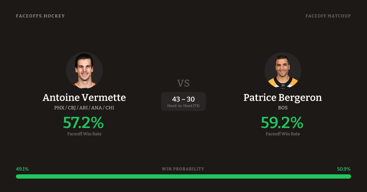 Antoine Vermette vs Patrice Bergeron — Faceoff Head-to-Head