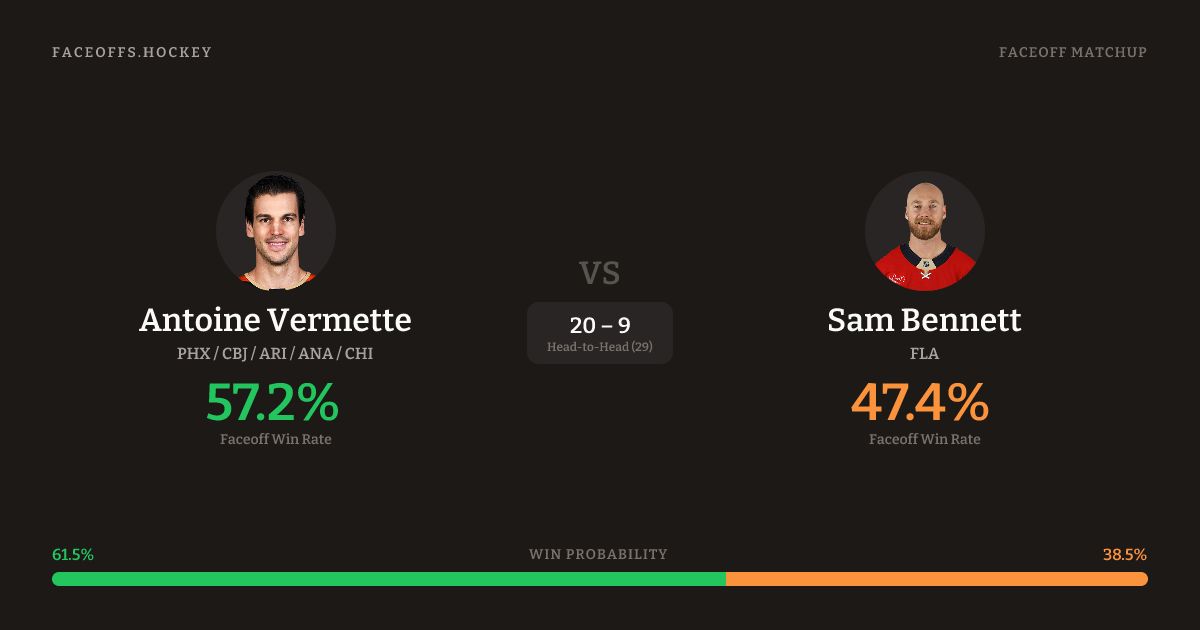 Antoine Vermette vs Sam Bennett — Faceoff Head-to-Head