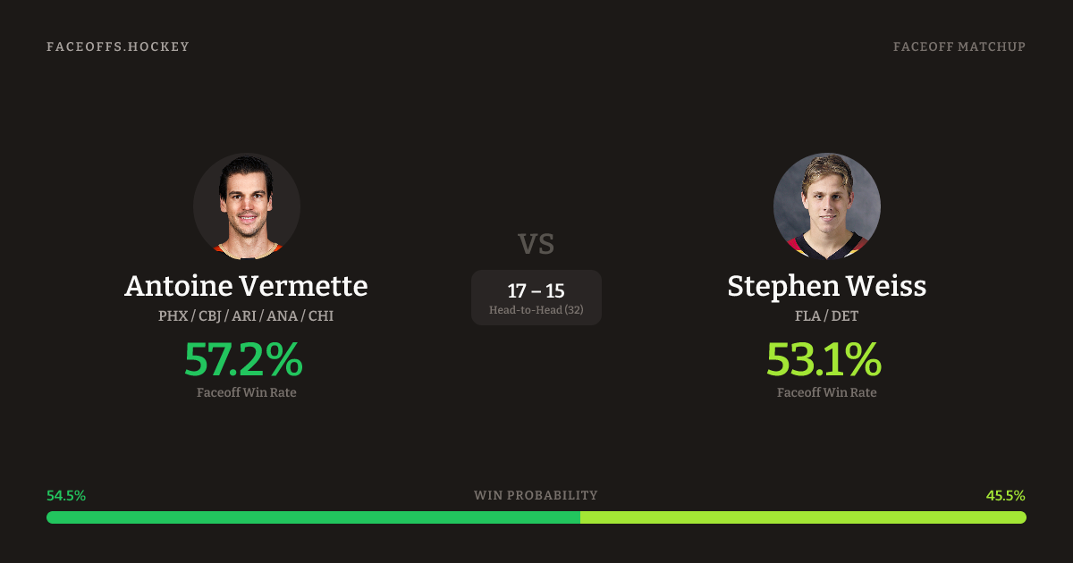 Antoine Vermette vs Stephen Weiss — Faceoff Head-to-Head
