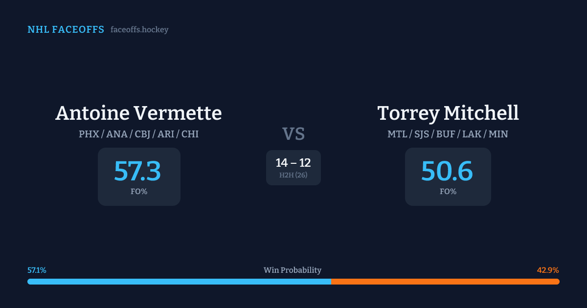 Antoine Vermette vs Torrey Mitchell — Faceoff Head-to-Head