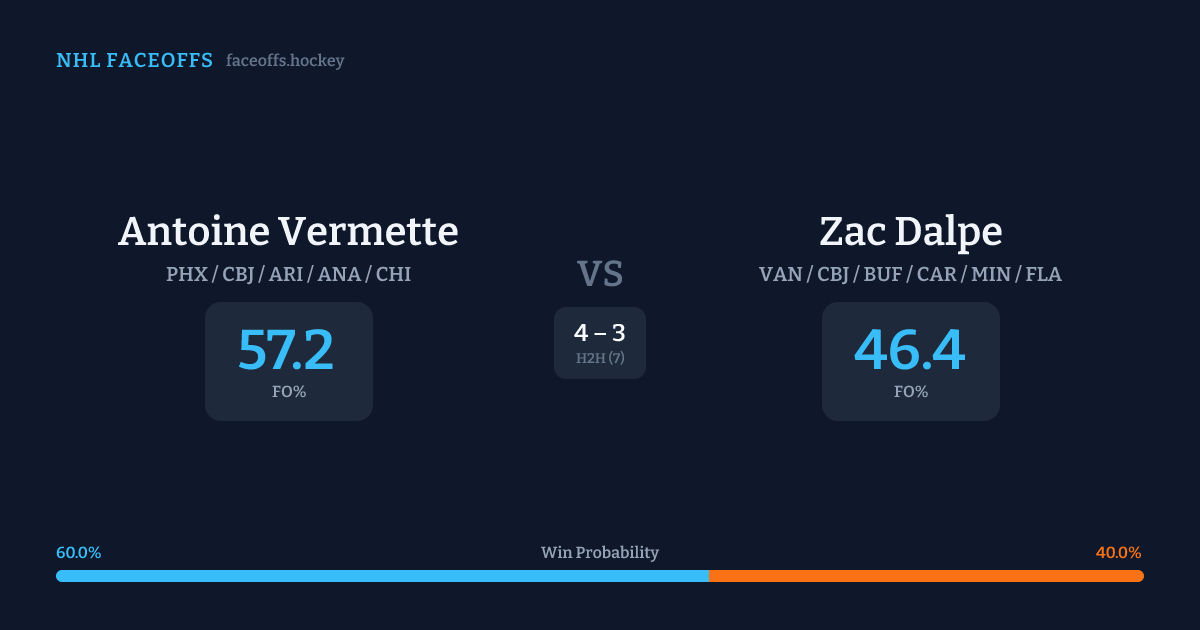 Antoine Vermette vs Zac Dalpe — Faceoff Head-to-Head