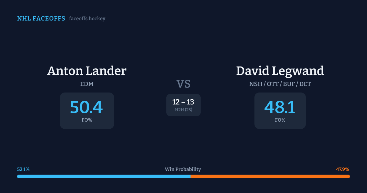 Anton Lander vs David Legwand — Faceoff Head-to-Head