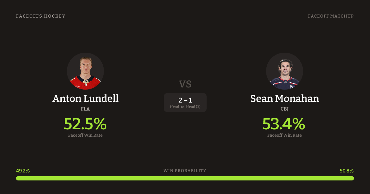 Anton Lundell vs Sean Monahan — Faceoff Head-to-Head