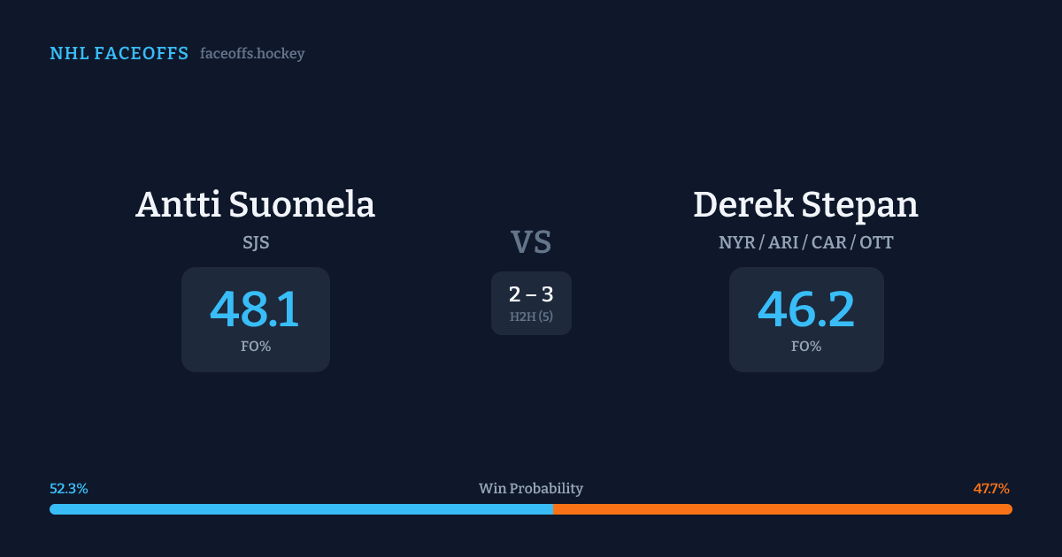 Antti Suomela vs Derek Stepan — Faceoff Head-to-Head