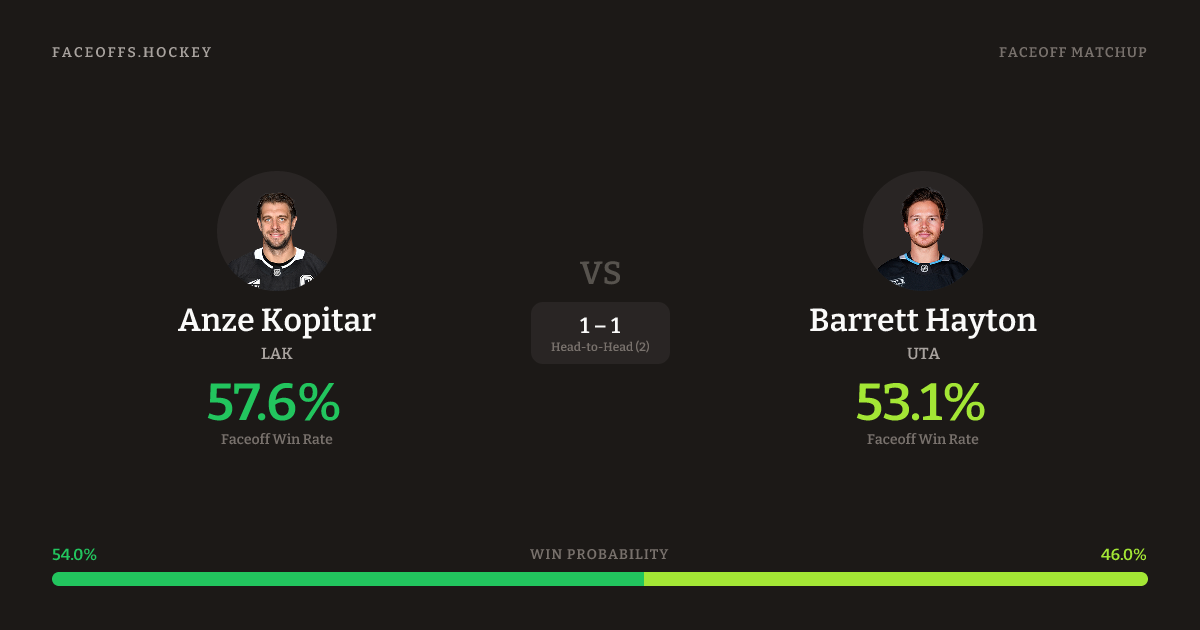Anze Kopitar vs Barrett Hayton — Faceoff Head-to-Head
