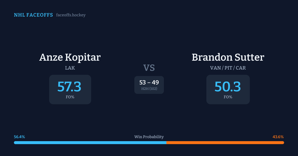 Anze Kopitar vs Brandon Sutter — Faceoff Head-to-Head