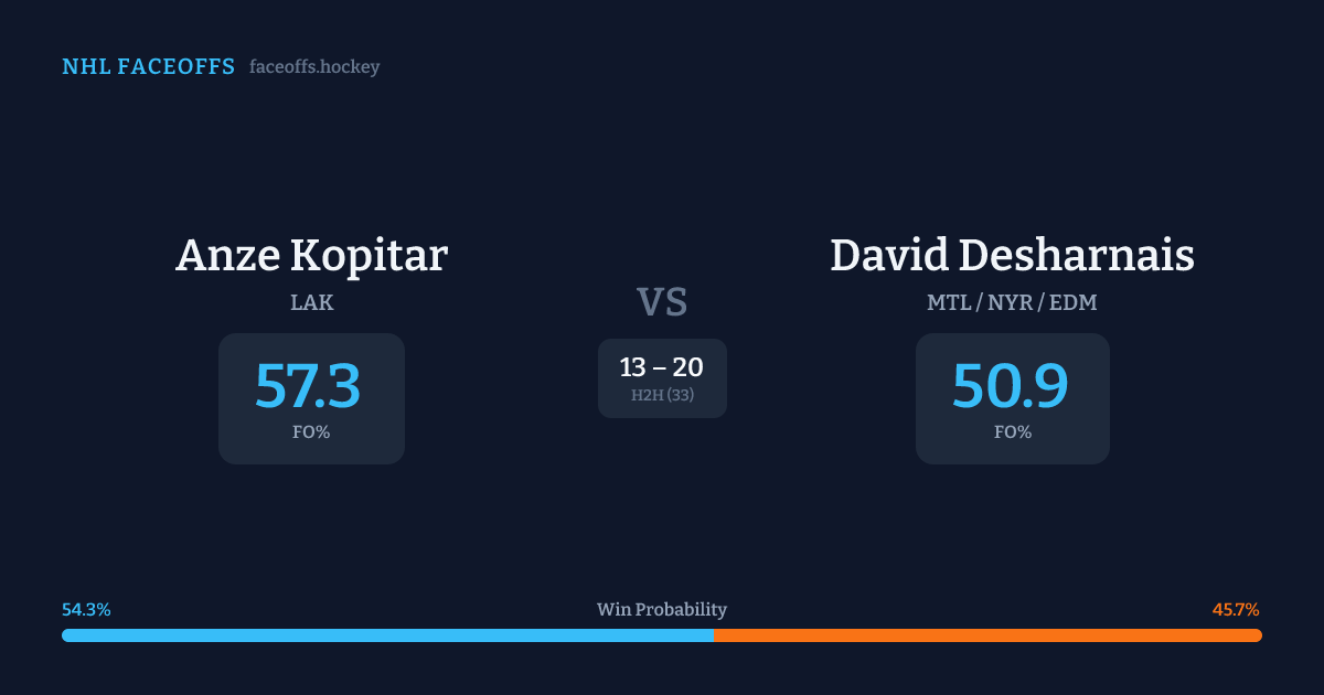 Anze Kopitar vs David Desharnais — Faceoff Head-to-Head