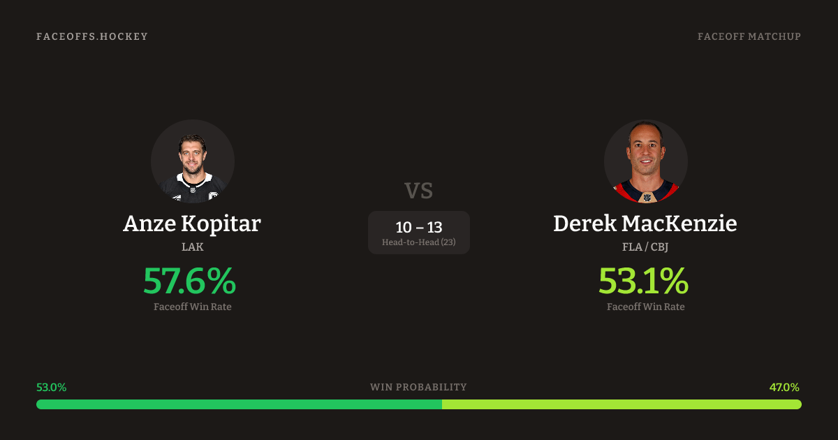 Anze Kopitar vs Derek MacKenzie — Faceoff Head-to-Head