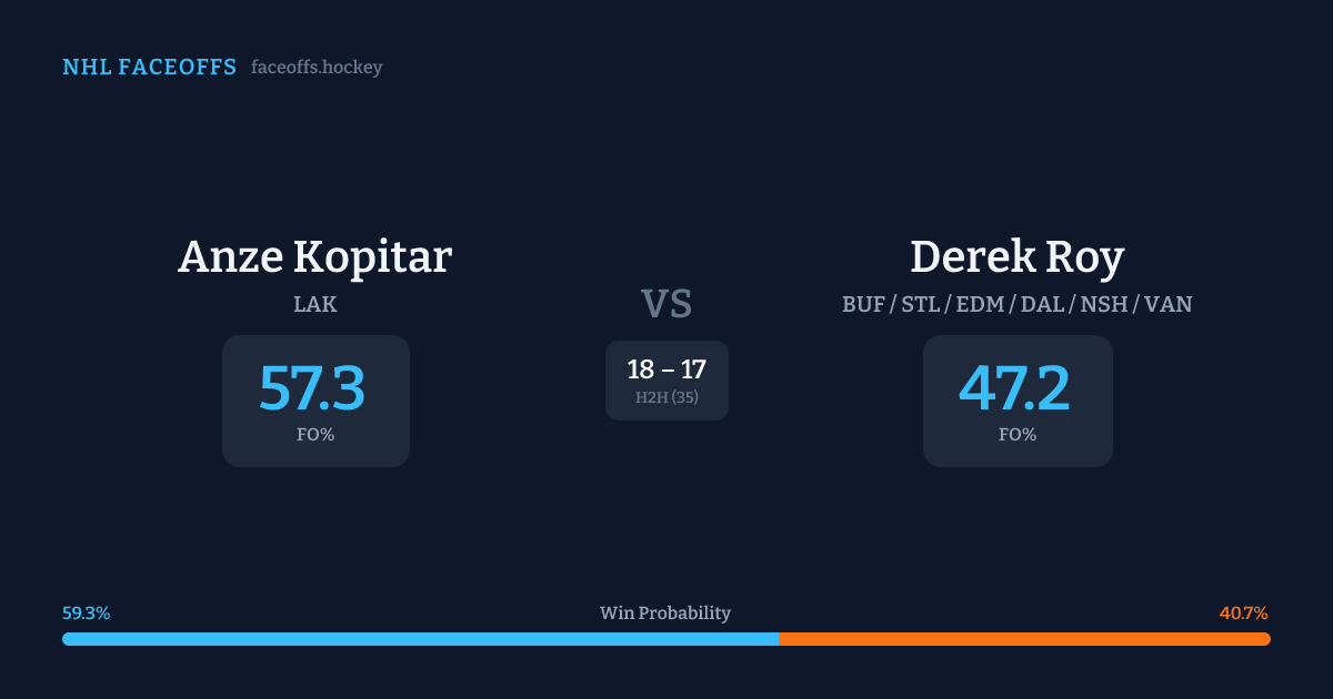 Anze Kopitar vs Derek Roy — Faceoff Head-to-Head