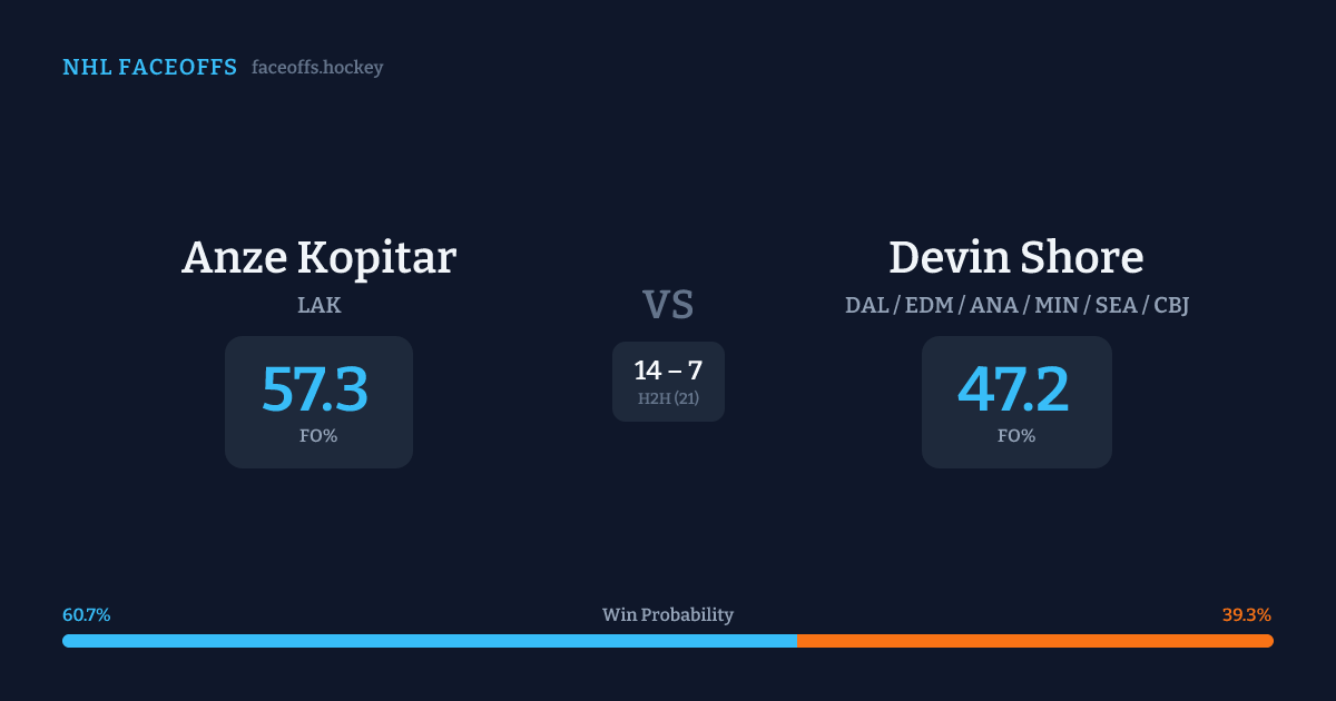 Anze Kopitar vs Devin Shore — Faceoff Head-to-Head