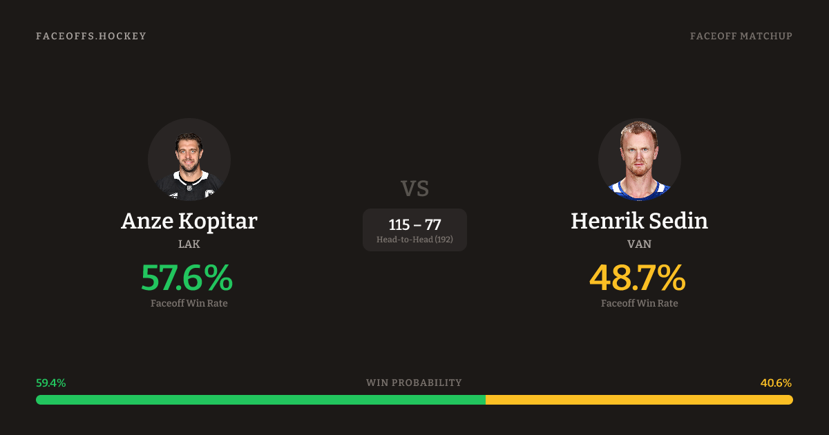 Anze Kopitar vs Henrik Sedin — Faceoff Head-to-Head