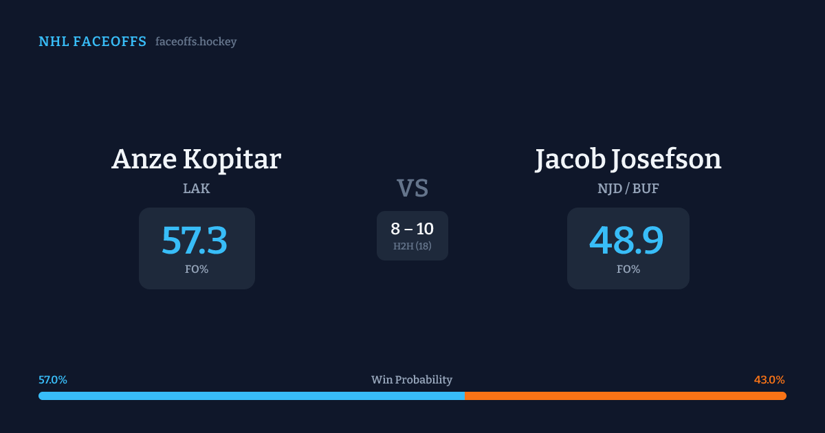 Anze Kopitar vs Jacob Josefson — Faceoff Head-to-Head