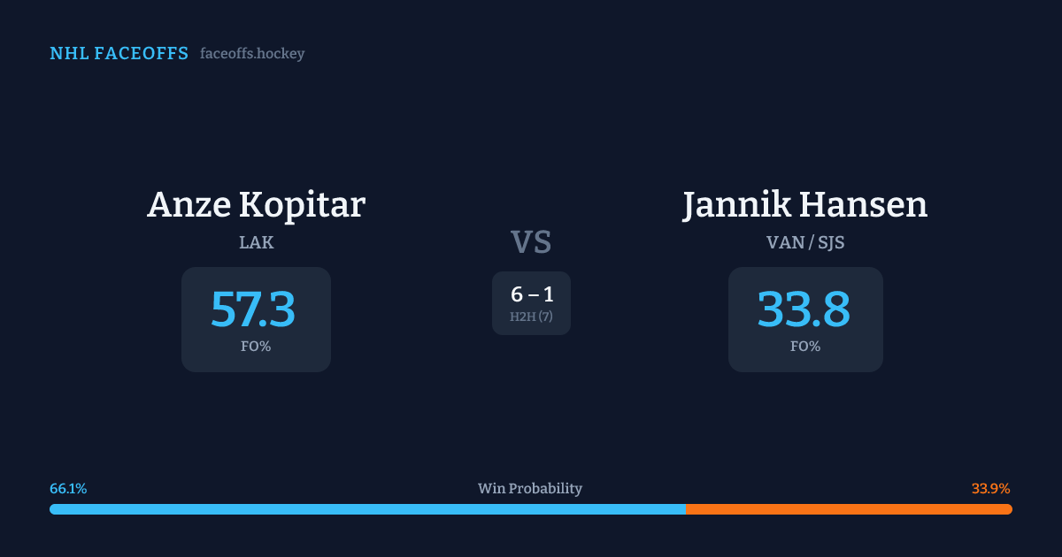 Anze Kopitar vs Jannik Hansen — Faceoff Head-to-Head