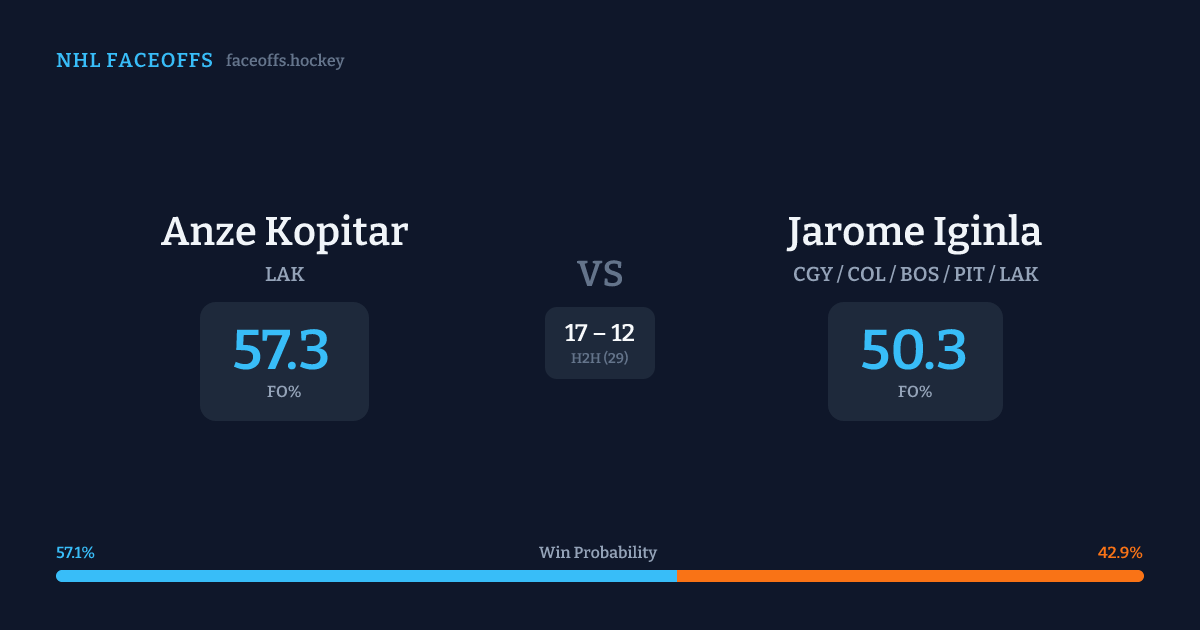Anze Kopitar vs Jarome Iginla — Faceoff Head-to-Head