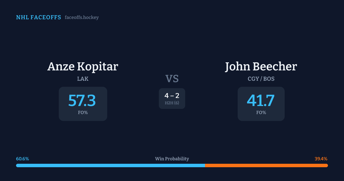 Anze Kopitar vs John Beecher — Faceoff Head-to-Head