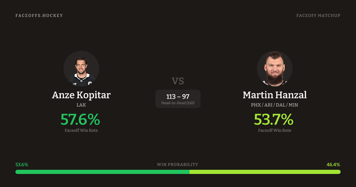 Anze Kopitar vs Martin Hanzal — Faceoff Head-to-Head