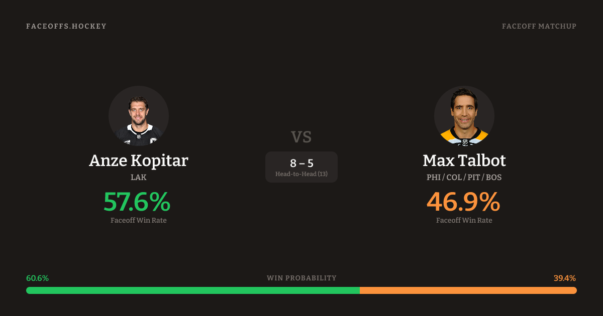 Anze Kopitar vs Max Talbot — Faceoff Head-to-Head