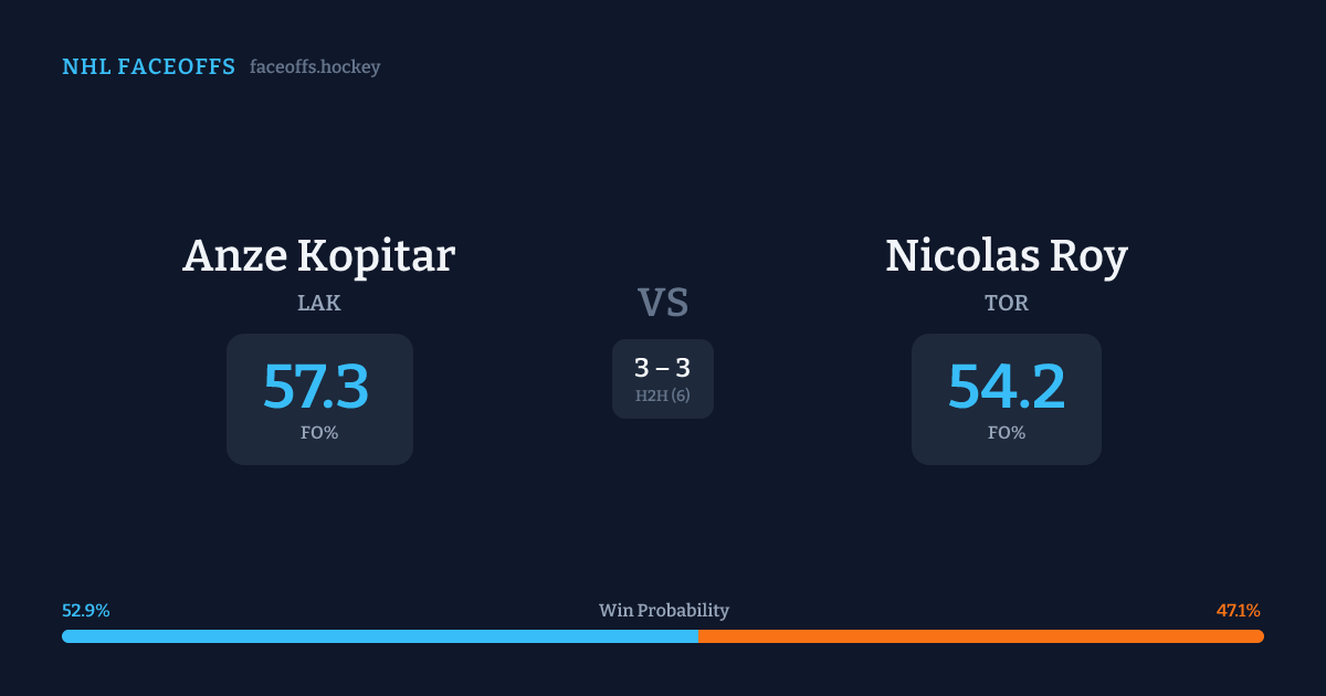 Anze Kopitar vs Nicolas Roy — Faceoff Head-to-Head