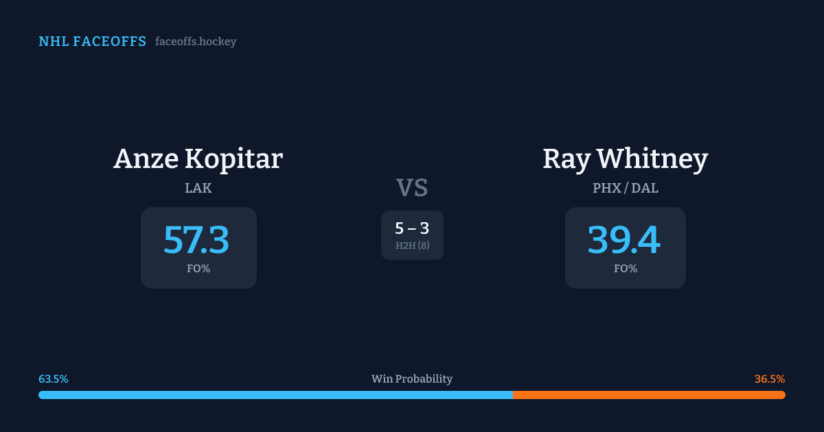 Anze Kopitar vs Ray Whitney — Faceoff Head-to-Head
