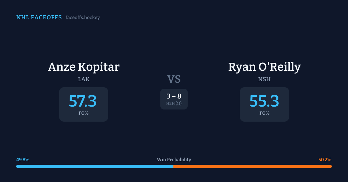 Anze Kopitar vs Ryan O'Reilly — Faceoff Head-to-Head