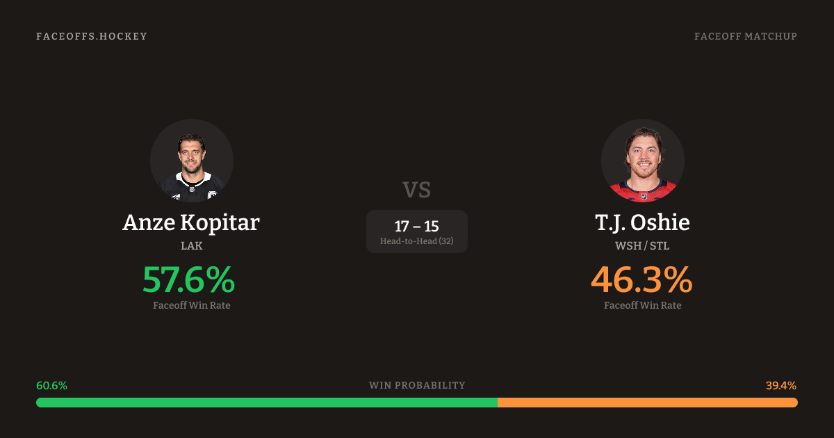 Anze Kopitar vs T.J. Oshie — Faceoff Head-to-Head