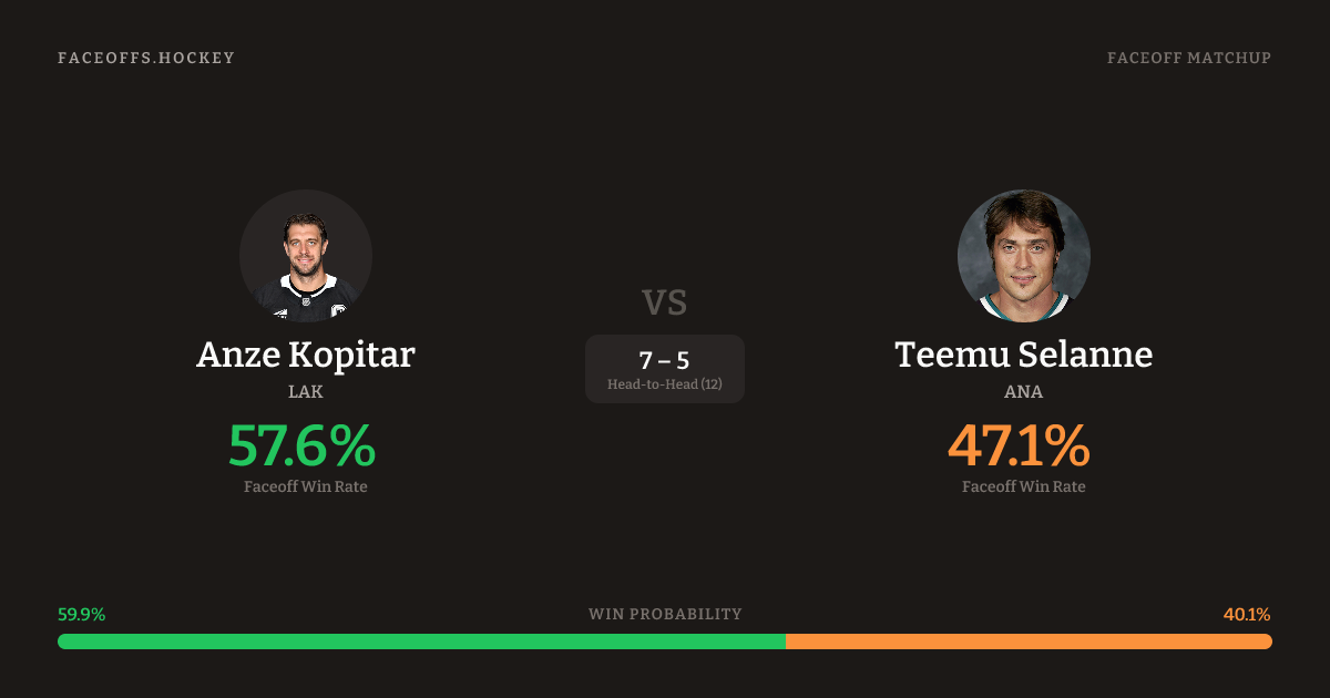 Anze Kopitar vs Teemu Selanne — Faceoff Head-to-Head