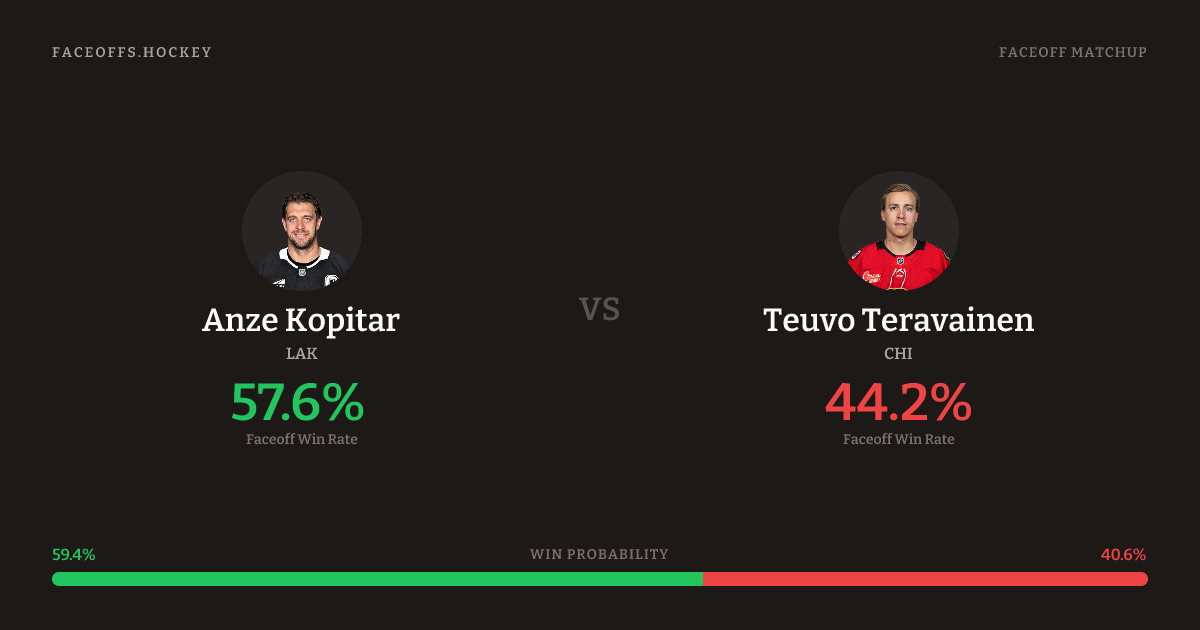 Anze Kopitar vs Teuvo Teravainen — Faceoff Head-to-Head