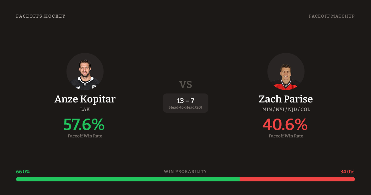 Anze Kopitar vs Zach Parise — Faceoff Head-to-Head