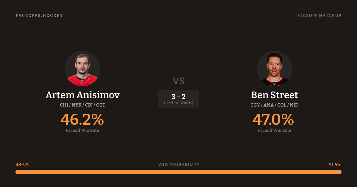 Artem Anisimov vs Ben Street — Faceoff Head-to-Head