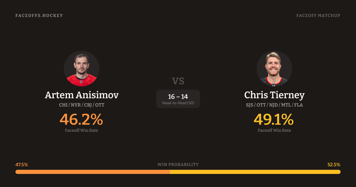 Artem Anisimov vs Chris Tierney — Faceoff Head-to-Head