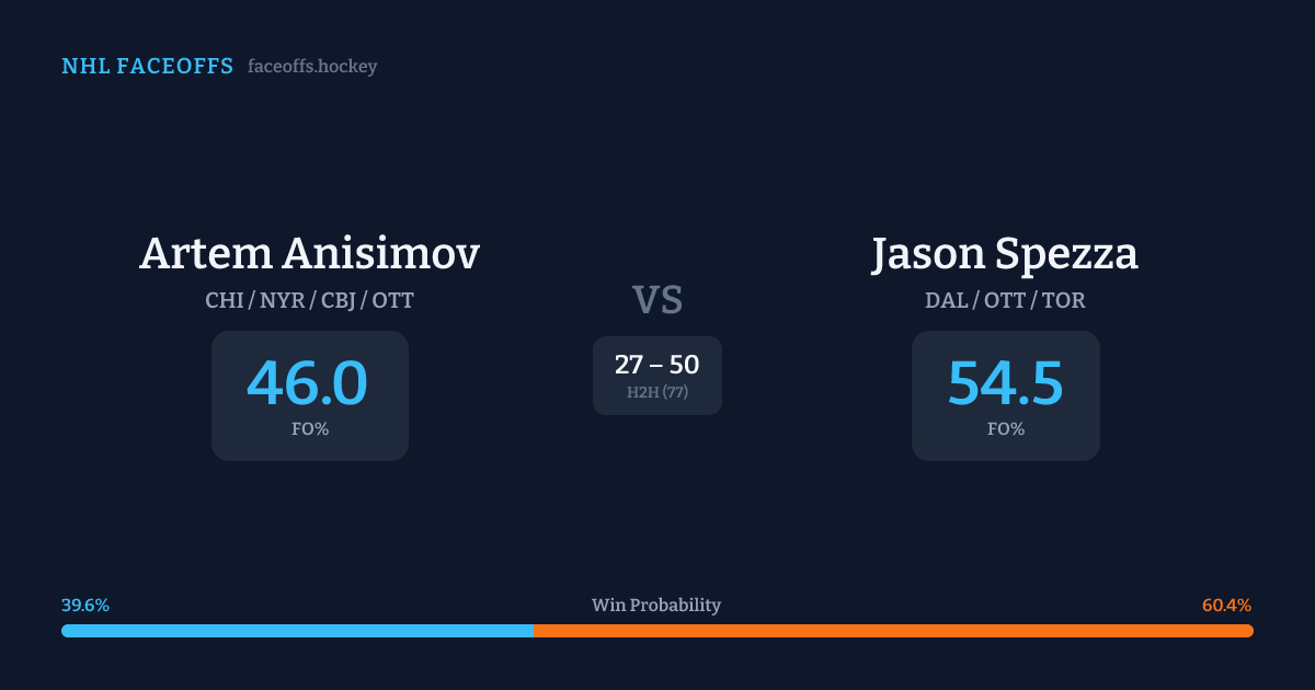 Artem Anisimov vs Jason Spezza — Faceoff Head-to-Head